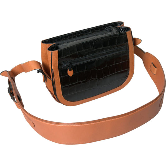 Balenciaga Black Brown Exotic Skin Leather Shoulder Camera Purse Bag