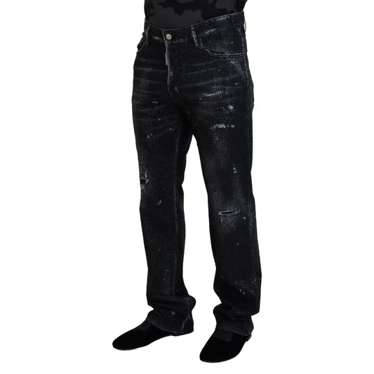 Dsquared² Black Crystal Embellished Tattered Denim Jeans