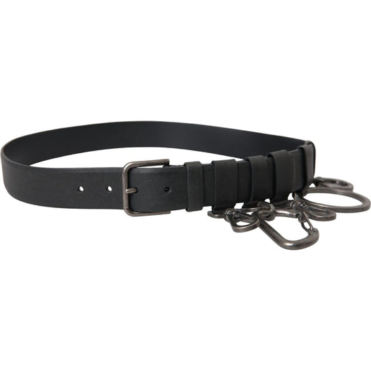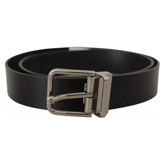 Dolce & Gabbana Black Calf Leather Silver Metal Buckle Belt