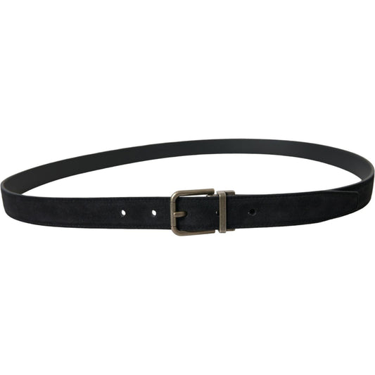 Dolce & Gabbana Blue Suede Leather Gold Metal Buckle Belt
