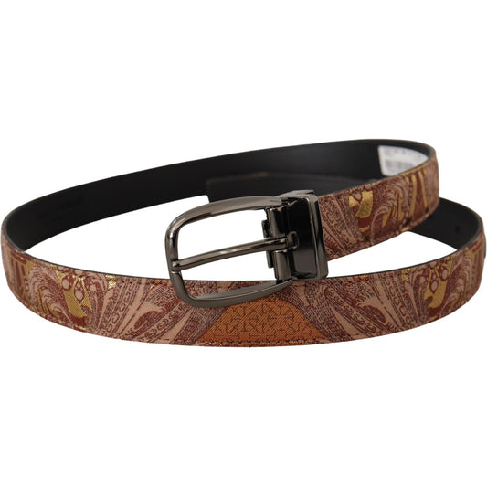 Dolce & Gabbana Red Jacquard Rose Leather Gold Metal Buckle Belt
