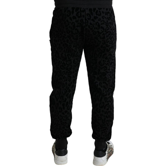 Dolce & Gabbana Black Leopard Cotton Slim Fit Jogger Pants