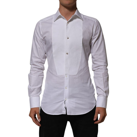 Dolce & Gabbana White Cotton Collared Bib GOLD Dress Shirt