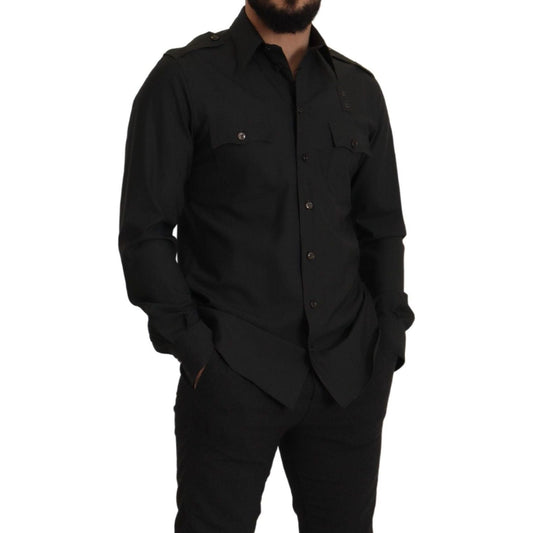 Dolce & Gabbana Dark Gray Cotton Collared Long Sleeves Shirt