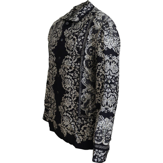 Dolce & Gabbana Black Silk Printed Collared Men Casual Shirt