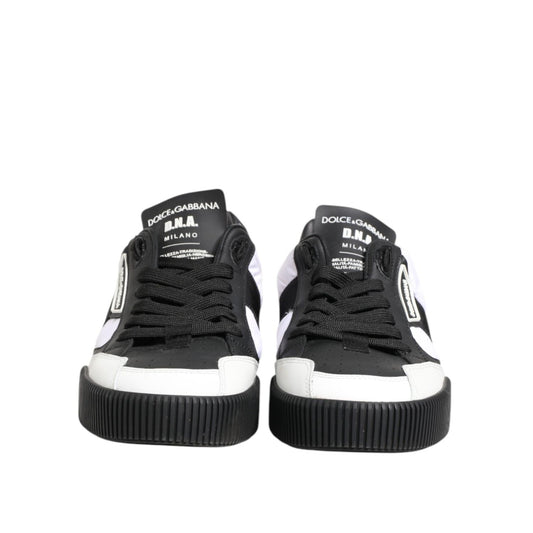 Dolce & Gabbana White Black Leather Portofino Sneaker Shoes