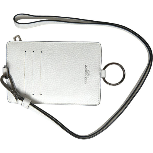 Dolce & Gabbana White Leather Lanyard Logo Card Holder Men Wallet