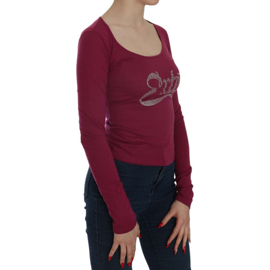 Red Exte Crystal Embellished Long Sleeve Top Blouse