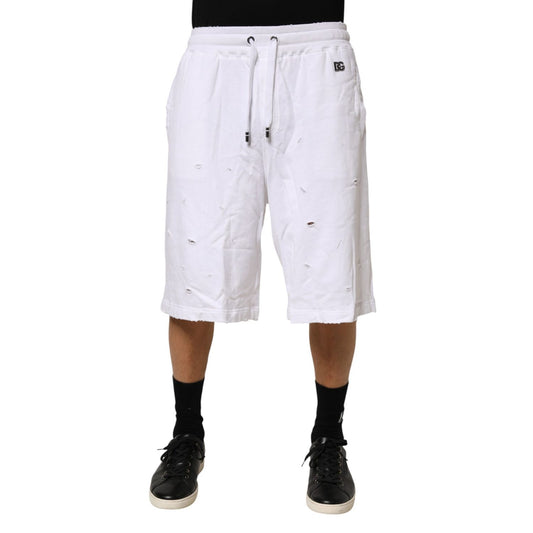 Dolce & Gabbana White Distressed Cotton Men Bermuda Shorts