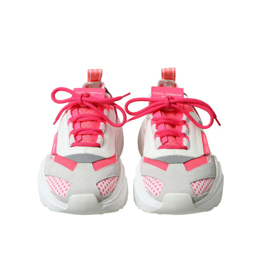 Dolce & Gabbana White Pink Leather Low Top Sneakers Shoes
