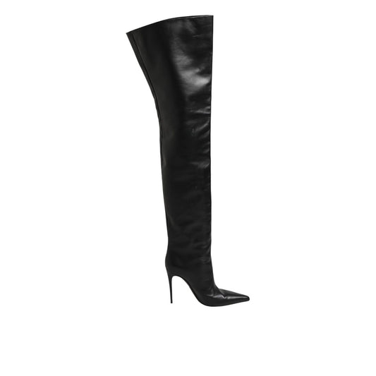 Dolce & Gabbana Black Leather Stiletto Knee High Boots Shoes