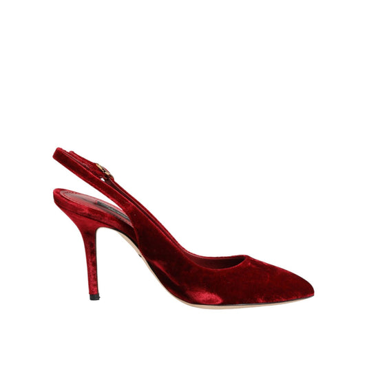 Dolce & Gabbana Red Suede High Heels Slingbacks Sandals Shoes