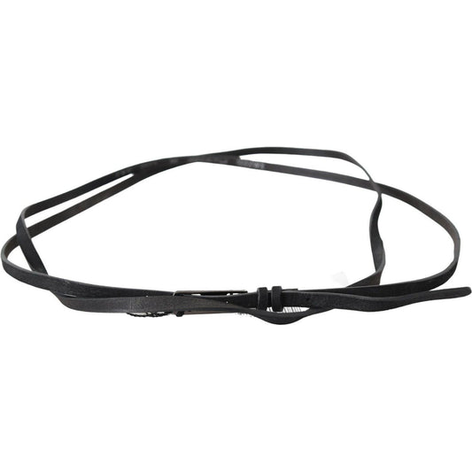 Ermanno Scervino Black Leather Fringes Logo Buckle Belt
