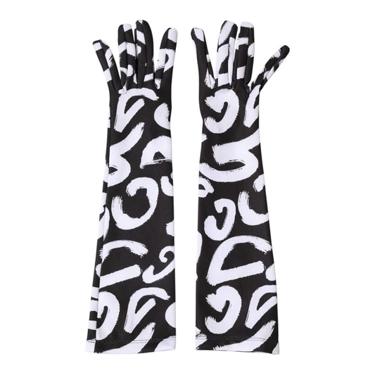 Dolce & Gabbana Gloves Black White DG Logo Elbow Length Mitten